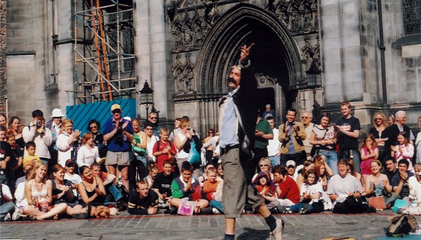 Another valuable skill I gained during my performance career was the art of facilitation. These skills were honed as a street performer. I learned the art of capturing and holding the attention of passers-by and capturing them sufficiently so that at the end of my show, they would pay me for the privilege. In this digital age of distraction the value of this skill has only increased in value. I know from both my consulting practice and education delivery, that participants will only give you valuable work if you can keep them engaged. I outline below a selection of images from my shows below and a video link here